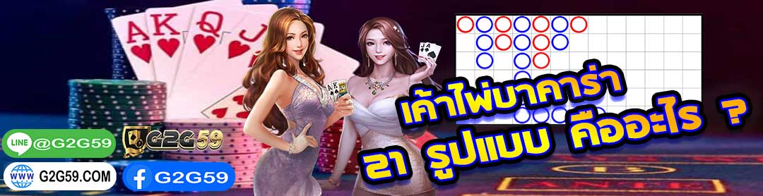 เค้าไพ่บาคาร่า 21 รูปแบบ ไม่ว่าเซียนคนไหน ก็ต่างนำมาใช้เป็นคู่คิดในการเล่น ใครถนัดเค้าไหนก็เล่นตามสถิติห้องนั้นๆ ไป แต่ถ้าใครอ่านเค้าได้เยอะ ก็ย่อมได้เปรียบมากกว่าคนอื่น การได้รับชัยชนะก็ย่อมมากขึ้นตามเป็นธรรมดา เค้าไพ่บาคาร่า 21 รูปแบบ จึงมีความสำคัญมากในการเล่นบาคาร่า เพราะจะทำให้ท่านรู้ทันคนอื่นก่อนหนึ่งก้าวเสมอ และไม่ต้องเสียเวลามาเดาเล่น แบบไม่มีจุดหมายปลายทาง เว็บไซต์ G2G59.COM ของเรา สอน อ่านเค้าไพ่ 3 จุด เข้าใจง่าย อ่านเป็นเร็ว ได้เงินไว รับรองว่าท่านจะไม่ขาดทุนอีกต่อไป