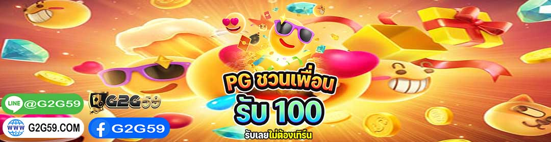 PG ชวนเพื่อน รับ 100 แจกมากที่สุด แจกเต็มจำนวนไม่หัก เป็นโปรโมชั่นดีๆ ที่รอมอบความสุขให้กับผู้เล่น เฉพาะที่เว็บไซต์ G2G59.COM เท่านั้น เรารวมเกมและโปรโมชั่นเพื่อให้บริการไม่จำกัด ไม่เป็นสองรองใคร ใส่ใจบริการตั้งแต่ขั้นตอนการสมัคร มั่นคง ปลอดภัย ซื่อสัตย์ เล่นและรับเงินจริง ตอบทุกคำถามที่นักพนันยุคใหม่ต้องการ มาพร้อมกับบริการอัตโนมัติ เล่นได้อย่างราบรื่นบนทุกแพลตฟอร์มไม่ว่าจะฝากหรือถอน ทำรายการง่าย ไม่พอใจล้านเปอร์เซ็นต์
